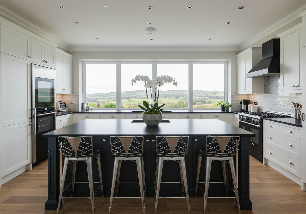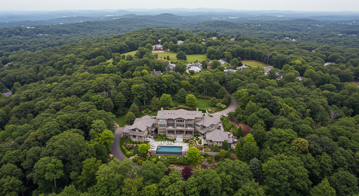 State of the art chef's kitchen with ultra high-end appliances, three pantries, a dumbwaiter for groceries, and a large center island with seating Gorgeous black stained mahogany hardwood Impressive floor to ceiling glass stairwell with views with LED ambient lighting Outdoor kitchen complete with BBQ, sink, refrigerator, and counter seating Beautifully landscaped property with vegetable gardens, barn and barnyard areas, chicken coop, and more! 3-Car garage with guest quarters above, kitchenette and powder room