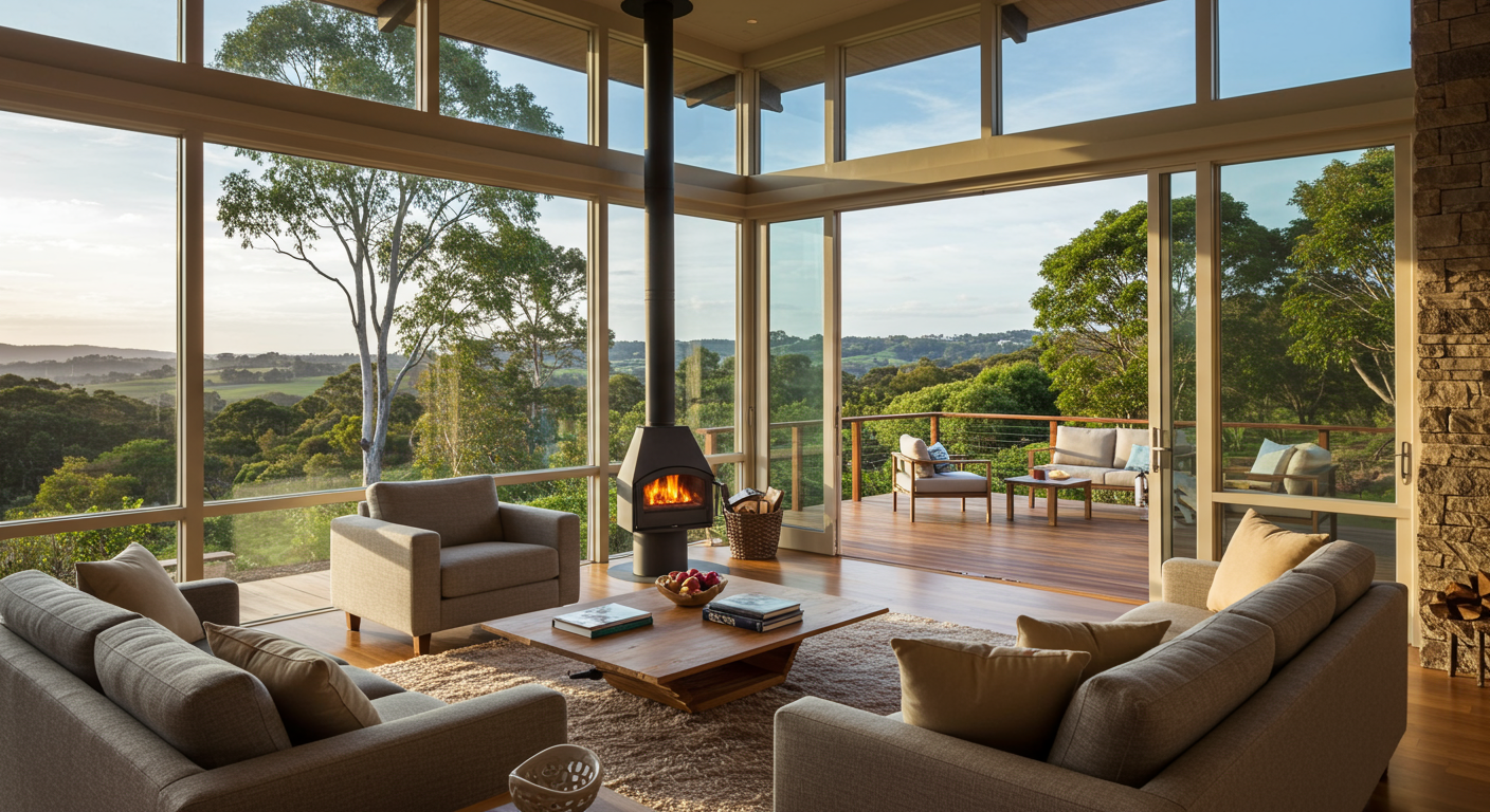 | - Private master suite with sitting area, two walk-in closets, wood-burning fireplace, and lovely views to the outdoors