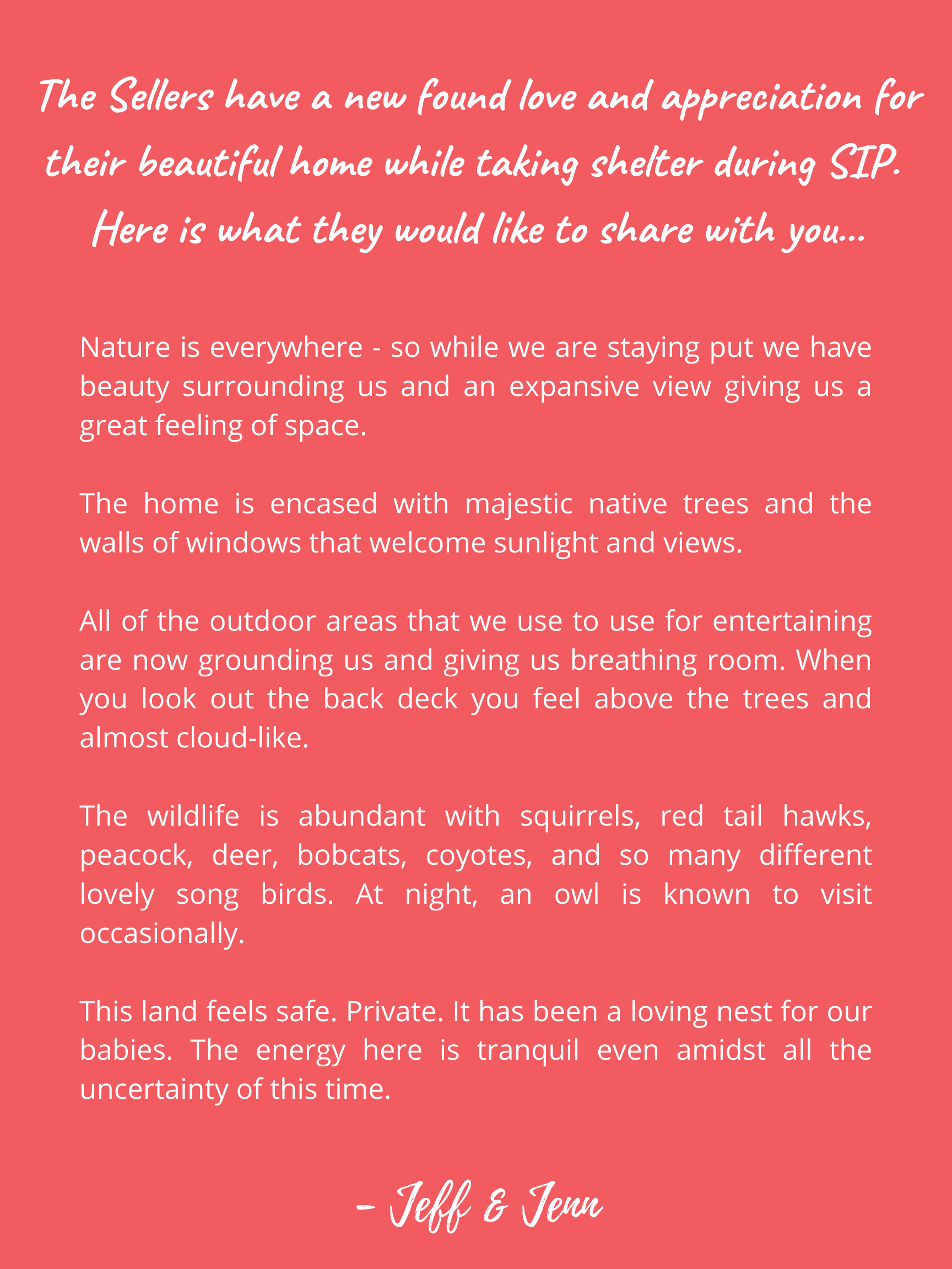 The health and well-being of our clients is our #1 priority. We are working closely with our support teams at Compass to provide you with a personal virtual open house experience so you can virtually view the property and ask any questions from the comfort of your home during the 'shelter in place' ordinances. |