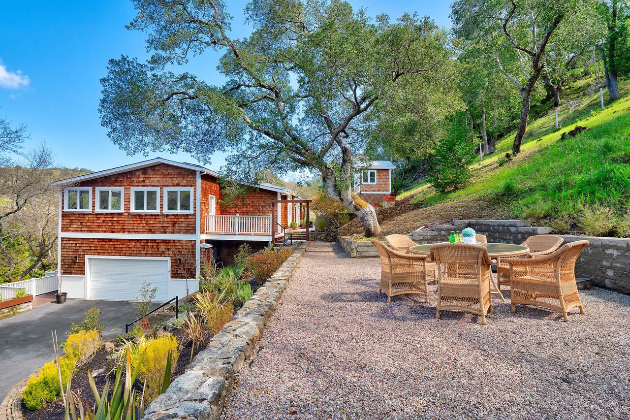 It’s hard to find a beautifully updated home of this size with a versatile floorplan in the desirable Sleepy Hollow community of San Anselmo. This is the epitome of value with all the bells and whistles on a private, gated, beautifully landscaped acre property just down the street from San Domenico School and the newly remodeled Sleepy Hollow Community Center. Lush landscaping, veggie gardens, outdoor dining, fruit trees, expansive views and a sweet structure perfect for a kids club or yoga room are just some of the highlights that adorn the property. The main level with wood floors is drenched in gorgeous views through the abundance of windows + high ceilings, with 3 bedrooms + office and a luxurious primary suite designed to take in the night sky. The lower level with both separate and interior access is a legal 1 bedroom rental with oversized bedroom, living room, kitchen, laundry + private deck. So many recent improvements including new roof, owned solar system, Tesla battery wall & charging station, upgraded windows, A/C, sewer lateral, custom closets and Miele and Dacor appliances making it easy to move right and embrace this retreat-like setting. The world is a crazy place. Your home should serve as a calm, inviting space to get away from the noise and just breathe and relax. That place is 166 Crane Drive. |