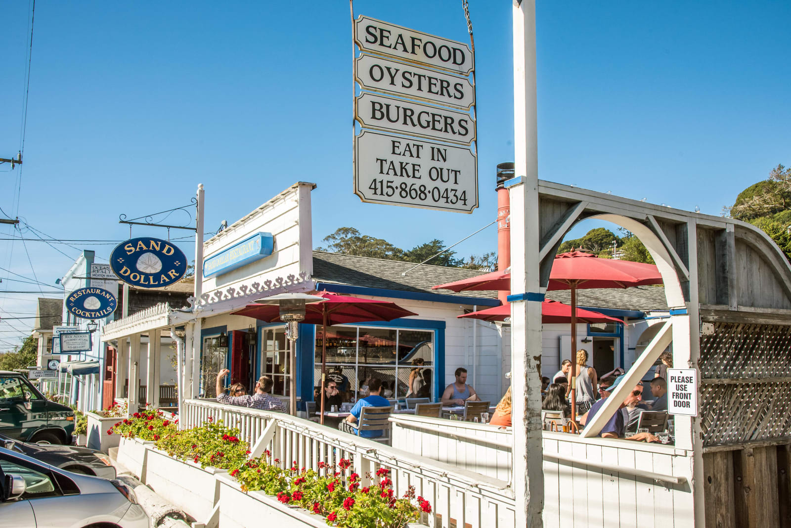 ​​​​​​​The laid-back town of Stinson Beach has a small but vibrant Main Street with unique eateries, galleries, and a surf shop. After an exuberant day of swimming, surfing, hiking, or hang gliding, locals head for the patio of the Sand Dollar Restaurant for a plate of fish tacos and a cold beer.