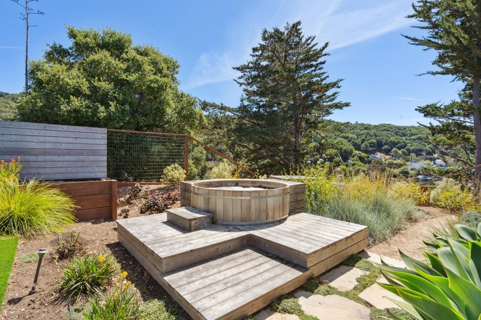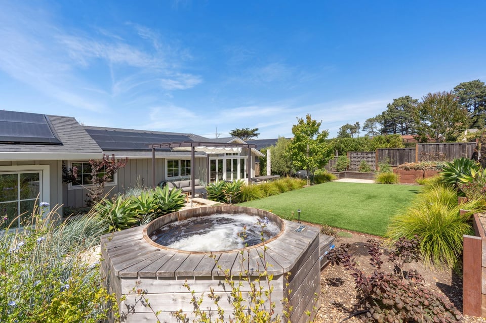 The primary suite is a private retreat with wood-beamed ceilings, a luxurious spa-inspired bathroom complete with a steam shower and heated floors, and French doors that open to the beautifully landscaped backyard. Outside, you'll find a custom cedar spa, low-maintenance turf, modern hardscaping, and a retractable shade arbor for year-round enjoyment.